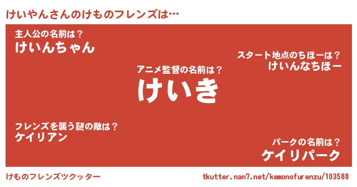 | 男性向けラノベタイトル風あだ名 | 『けいやんの嫁は女の子じゃないと思った?』 |