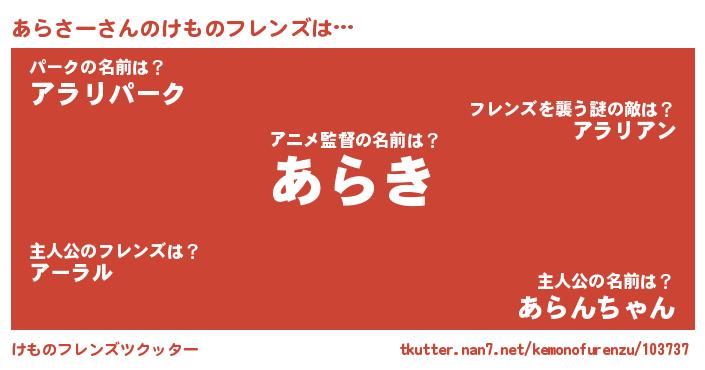 | 男性向けラノベタイトル風あだ名 | 『あらさーの嫁は女の子じゃないと思った?』 |