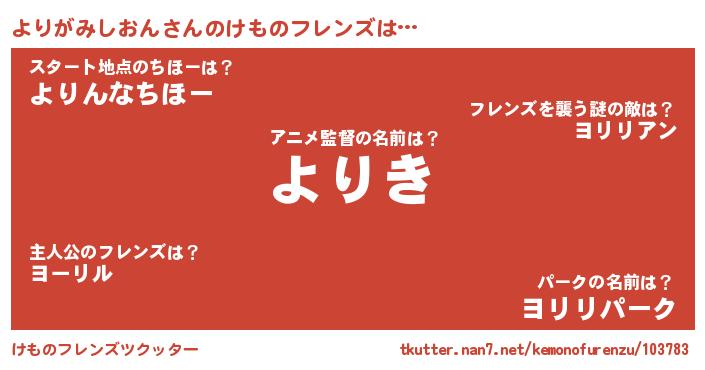 | 意味不明あだ名 | 『とにかく怪しいよりがみしおん』 |