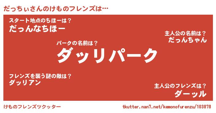 | 男性向けラノベタイトル風あだ名 | 『だっちぃに滅ぼされるだけの簡単なお仕事です』 |