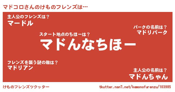 | 意味不明あだ名 | 『マドコロフォーエバー』『自称マドコロ』 |
