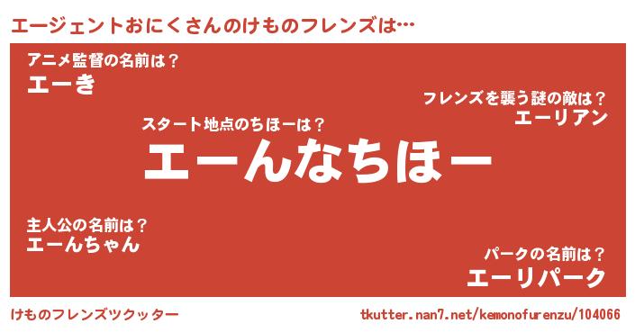 | 2回繰り返すあだ名 | 『しんしん』『わなわな』『エエーー』 |