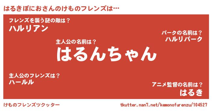 | 2回繰り返すあだ名 | 『はるはる』『ずるずる』『ぶるぶる』 |