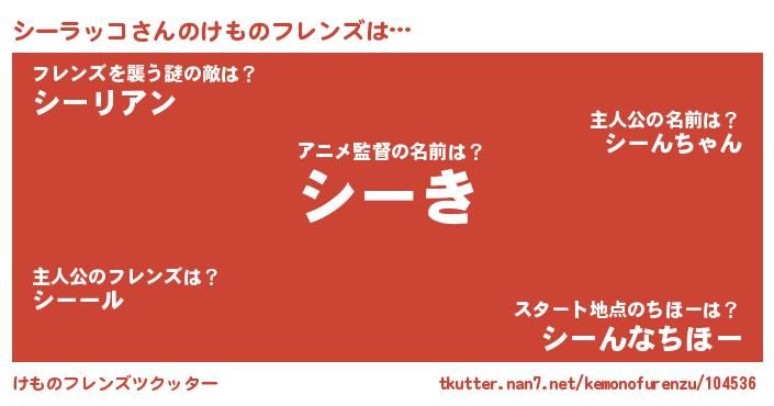 | 男性向けラノベタイトル風あだ名 | 『魔弾の王とシーラッコ』 |