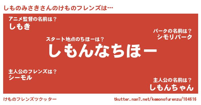 | 意味不明あだ名 | 『住所不定無職しものみさき(12歳)』 |