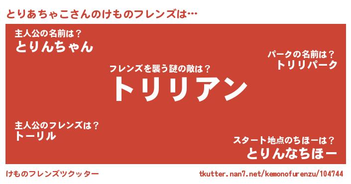 | 肩書あだ名 | 『とりあちゃこ少将』『とりあちゃこ教授』 |
