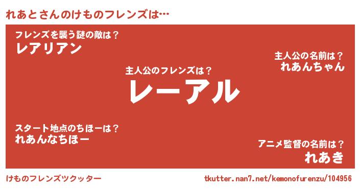 | 男性向けラノベタイトル風あだ名 | 『この素晴らしい世界にれあとを!』 |