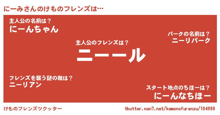 | 2回繰り返すあだ名 | 『ごわごわ』『にーにー』『ににーー』 |