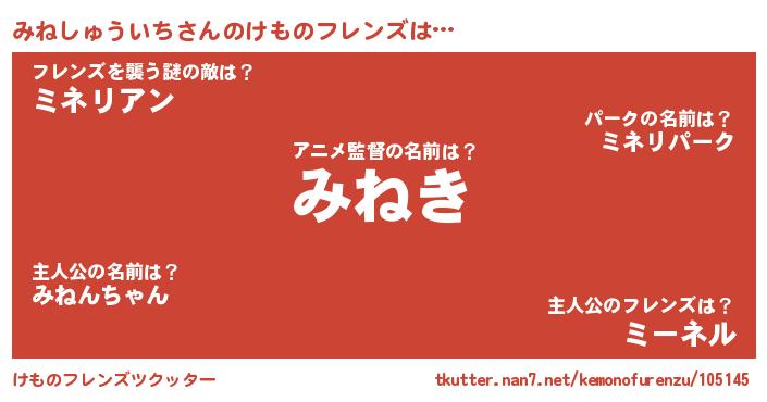 ヘコむあだ名 | 『みねっちょ』『みねしゅういち(震え声)』 |