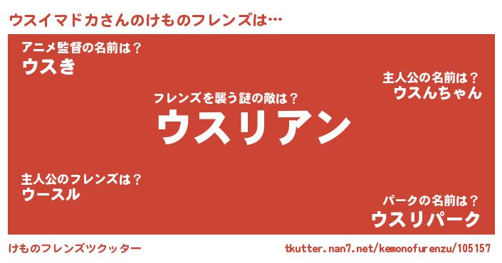 | 欧米人風あだ名 | 『ウスイマドカ・ステッグマイヤー』 |