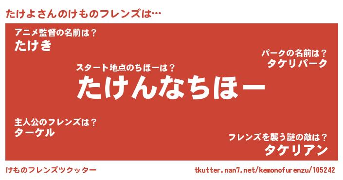 | 意味不明あだ名 | 『住所不定無職たけよ(89歳)』 |