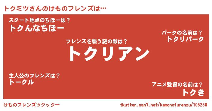 | 意味不明あだ名 | 『住所不定無職トクミツ(98歳)』 |