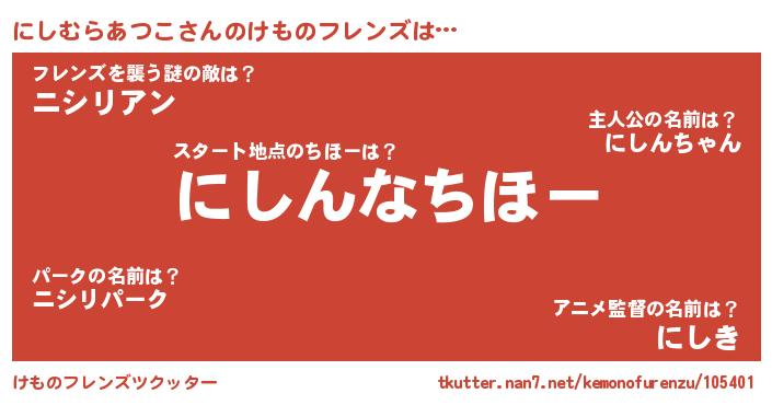 | ファンタジー風あだ名 | 『エターナルニシムラアツコー』 |