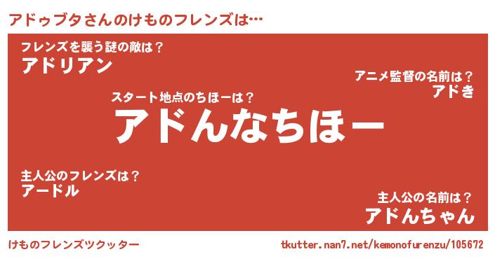 | 意味不明あだ名 | 『アドゥブタフォーエバー』 |