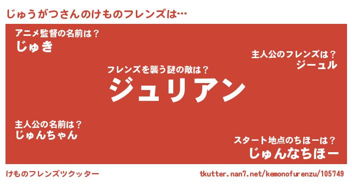 | ヒーロー風カッコイイあだ名 | 『友情の使者じゅうがつ』『幻影騎士ジュ』 |