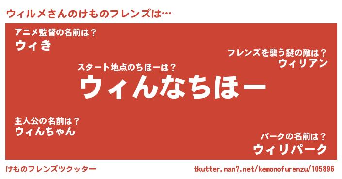 | 意味不明あだ名 | 『ヨモギ科ウィルメ属』『自称ウィルメ』 |
