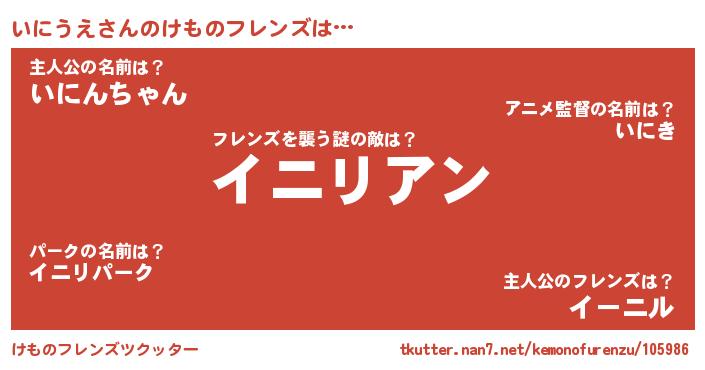 | ヘコむあだ名 | 『いにもー』『いにうえ(爆)』 |