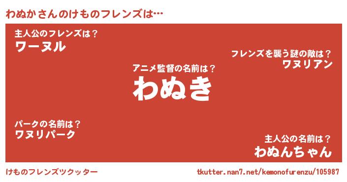 | ポケモン風あだ名 | 『ヒワヌカ』『ワーヌイ』『ゼニワヌ』 |