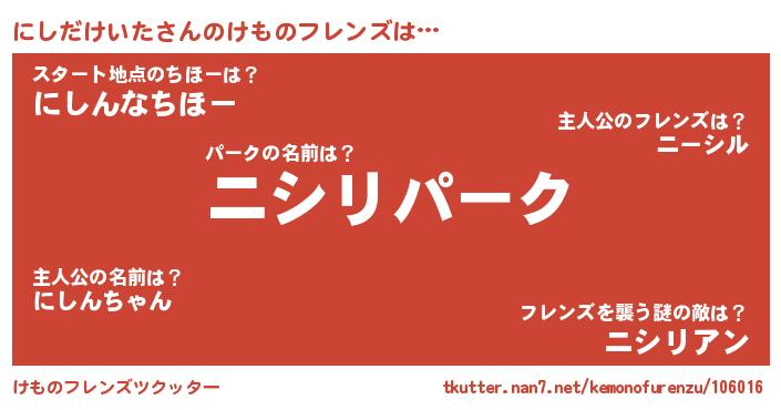 | 胡散臭い通販商品みたいなあだ名 | 『テレビで話題の高麗人参…その名も「にしだけいた」』 |