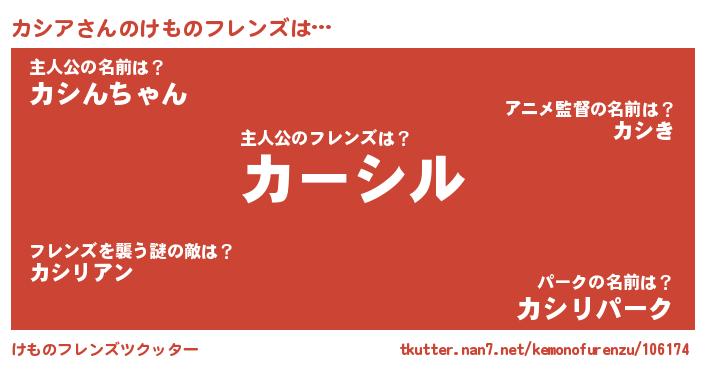 | 意味不明あだ名 | 『住所不定無職カシア(39歳)』『自称カシア』 |