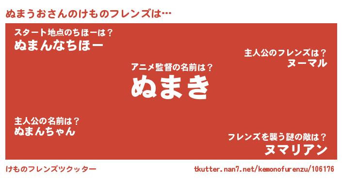 | 2回繰り返すあだ名 | 『ぬれぬれ』『とんとん』『ぬぬまま』 |