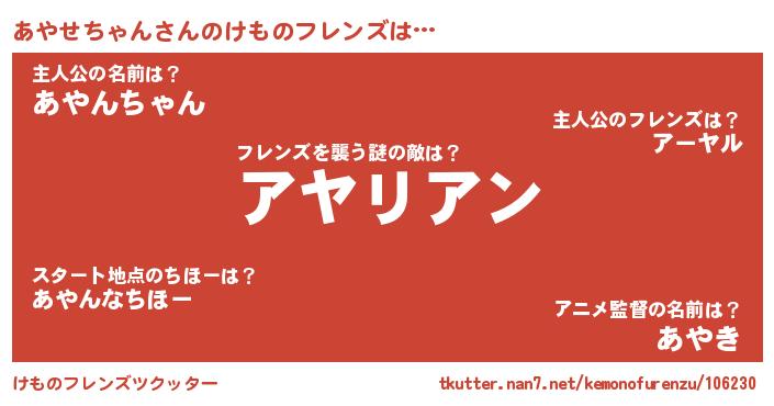 | ファンタジー風あだ名 | 『クインアット』『アヤフェル』 |