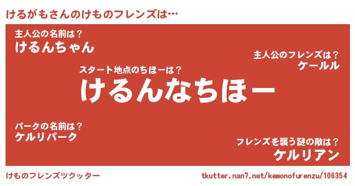 | 2回繰り返すあだ名 | 『けけるる』『つらつら』『けるける』 |