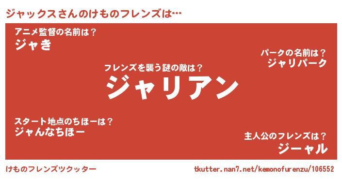 | ヘコむあだ名 | 『ジャお』『ジャックス(遠い目)』 |