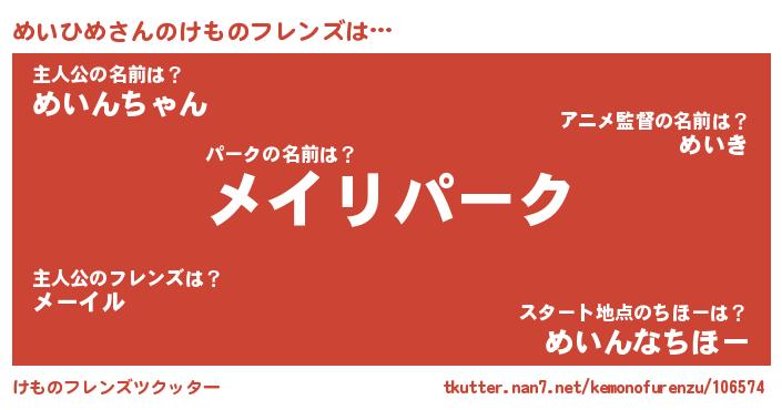 | 男性向けラノベタイトル風あだ名 | 『Re:めいひめから始める異世界生活』 |