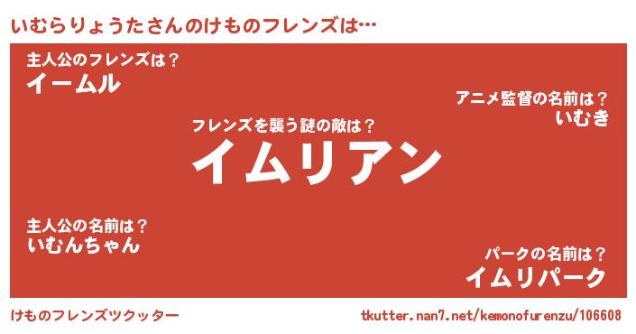 | 意味不明あだ名 | 『もやし科いむらりょうた属』 |