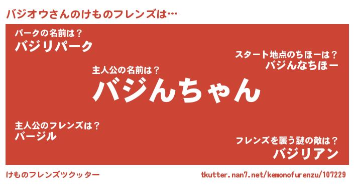 | ファンタジー風あだ名 | 『バジフェル』『ゼバジトゥ』 |