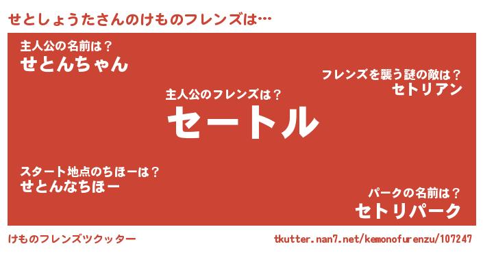| 意味不明あだ名 | 『永久保存せとしょうた』 |