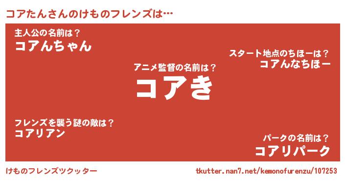 | 意味不明あだ名 | 『とにかく怪しいコアたん』 |