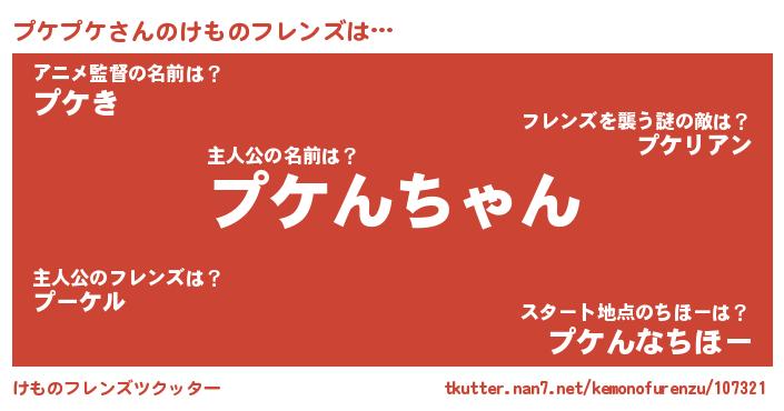 | 2回繰り返すあだ名 | 『プケプケ』『うろうろ』『ププケケ』 |