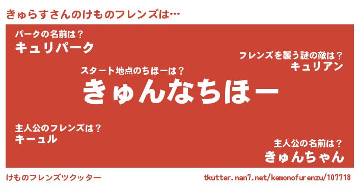 | 意味不明あだ名 | 『きゅらすフォーエバー』『自称きゅらす』 |