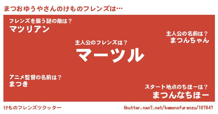 | 男性向けラノベタイトル風あだ名 | 『この素晴らしい世界にまつおゆうやを!』 |