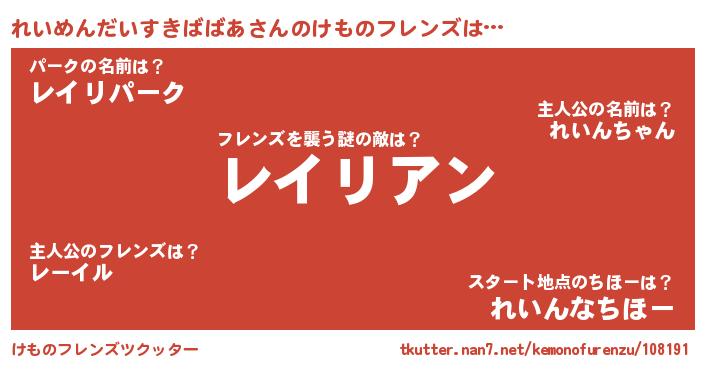 | 男性向けラノベタイトル風あだ名 | 『おまえをオタクにしてやるから、俺をれいめんだいすきばばあにしてくれ! 』 |