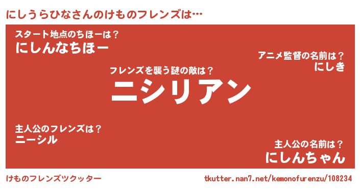 | 肩書あだ名 | 『にしうらひな船長』『にしうらひな大佐』 |