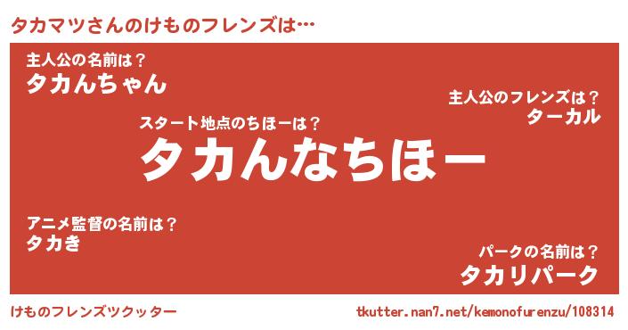 | ファンタジー風あだ名 | 『エターナルタカマツー』『タカフェル』 |