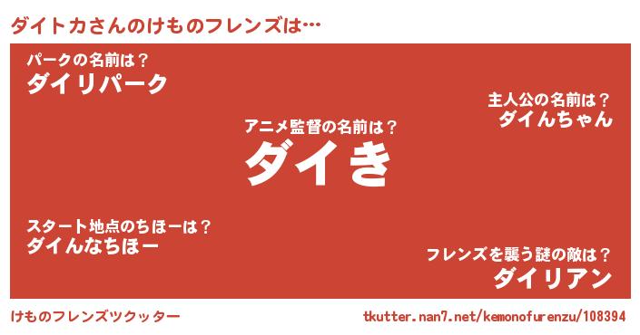 | 意味不明あだ名 | 『住所不定無職ダイトカ(91歳)』 |