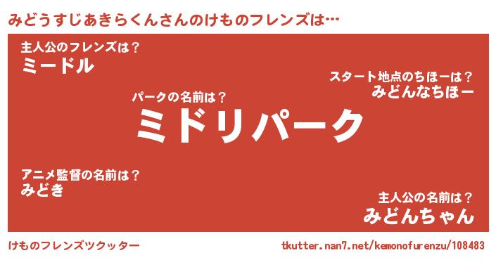 | ヘコむあだ名 | 『みどうすじあきらくん(笑)』『みどもー』 |