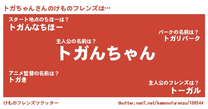 | 意味不明あだ名 | 『ペロリントガちゃん』『自称トガちゃん』 |