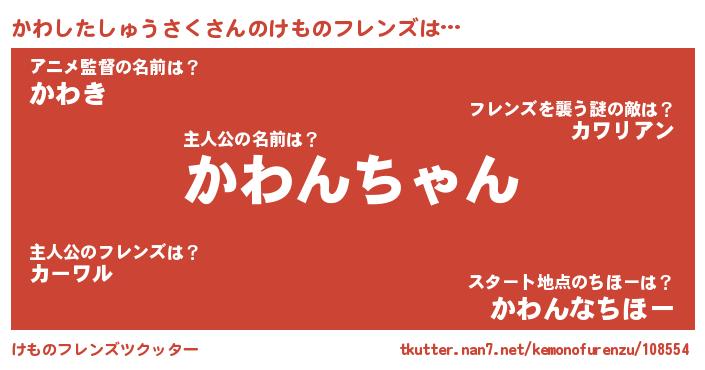 | 2回繰り返すあだ名 | 『わいわい』『とぼとぼ』『かわかわ』 |
