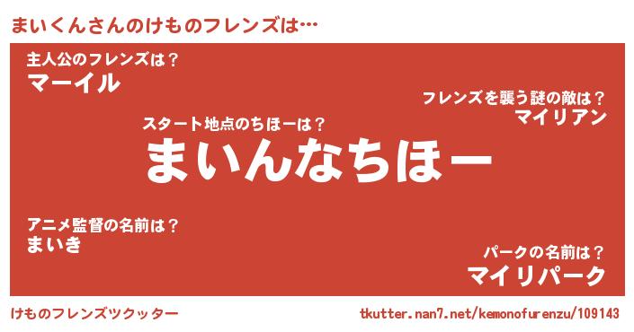| 意味不明あだ名 | 『まいくんフォーエバー』『自称まいくん』 |