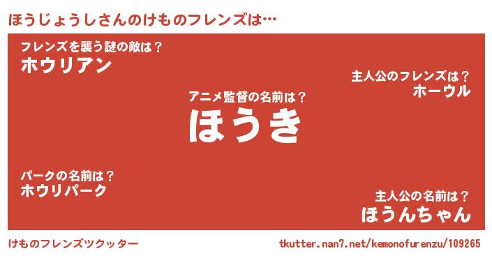 | ポケモン風あだ名 | 『ホウキング』『ヒホウジョウシ』 |