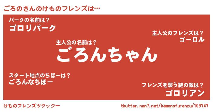 | 2回繰り返すあだ名 | 『ごろごろ』『もろもろ』『わんわん』 |