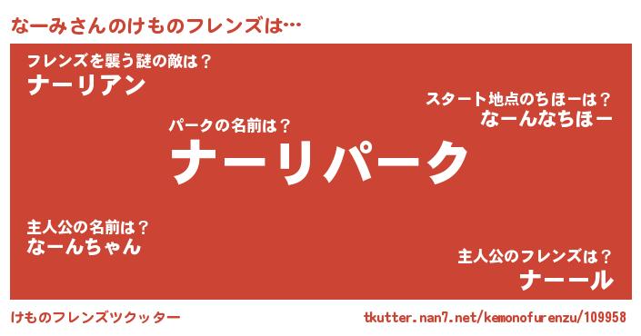 | 意味不明あだ名 | 『自称なーみ』『つくし科なーみ属』 |