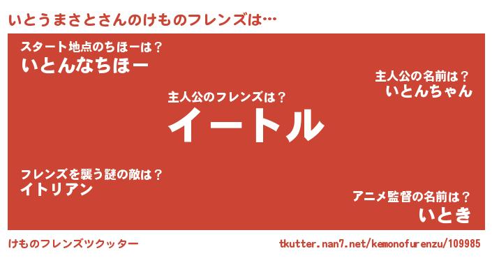 | 意味不明あだ名 | 『永久保存いとうまさと』 |