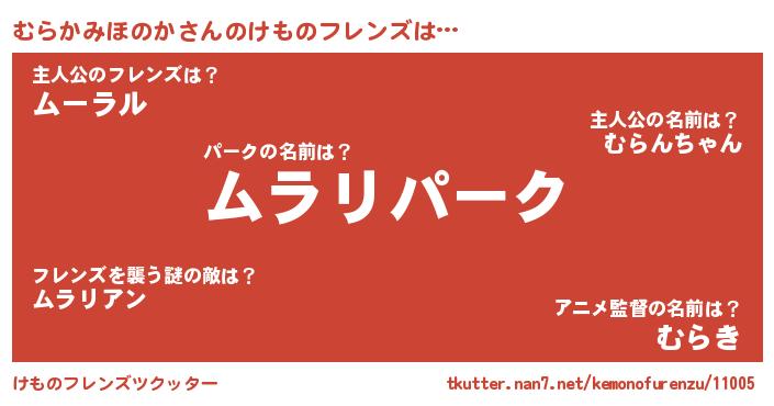 | ヘコむあだ名 | 『むらかみほのか(遠い目)』『むらっ子』 |