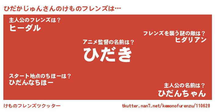 | 男性向けラノベタイトル風あだ名 | 『ひだかじゅんの嫁は女の子じゃないと思った?』 |